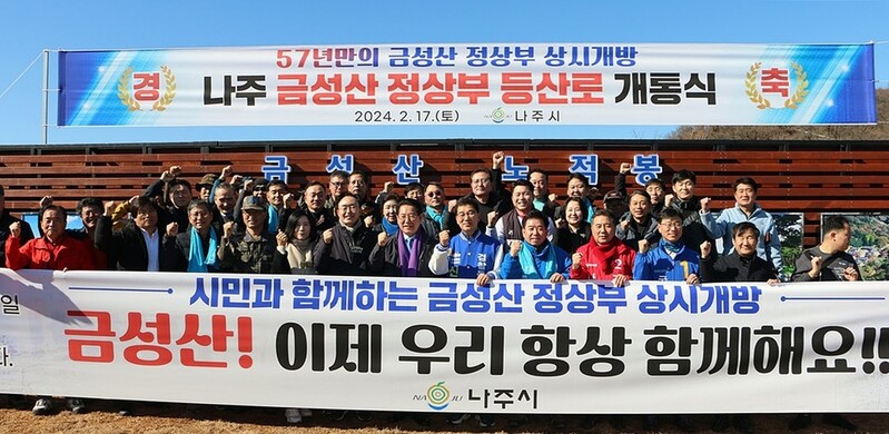 금성산 정상 개방은 지역민 숙원사업으로 나주시는 지난해 4월 공군부대와 개방에 합의하고 매설 지뢰 제거와 등산로 개설 등에 들어갔다.