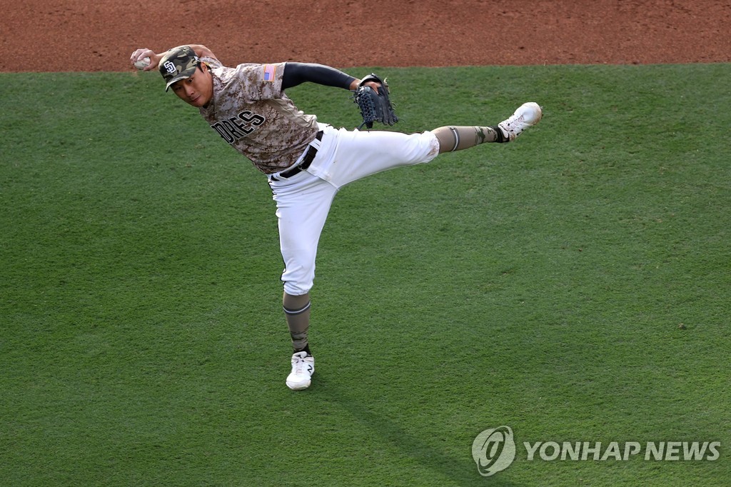 | ▲ In this Getty Images photo, San Diego Padres shortstop Kim Ha-seong makes a throw to first base during the top of the sixth inning of a Major League Baseball regular season game against the St. Louis Cardinals at Petco Park in San Diego on May 16, 2021. (Yonhap) |