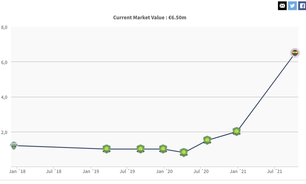 김민재와 함께 페네르바체 최후방을 책임지는 어틸러 설러이가 김민재 다음으로 높은 400만 유로의 상승폭을 기록했다.