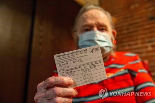 | ▲ 백신 접종 증명서를 들어보이는 미 노인[AFP=연합뉴스] |