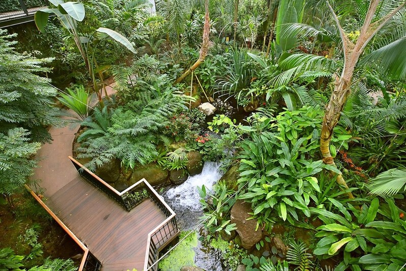 계단을 올라가면 5.5m 높이의 데크 길이 이어져 우거진 듯한 열대 식물을 관찰할 수 있다.