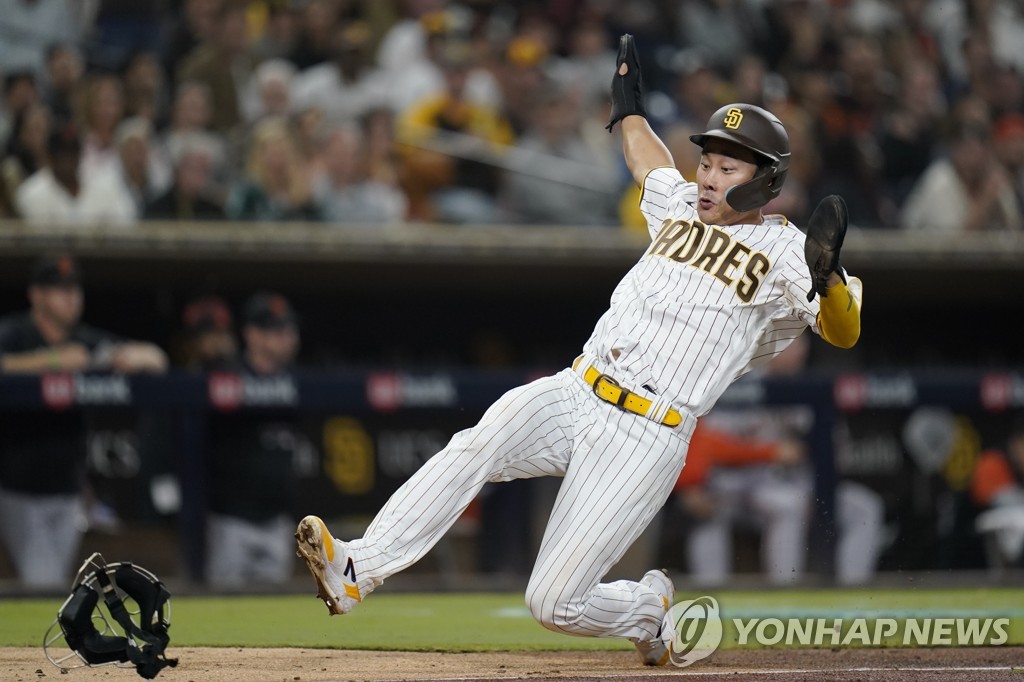 | ▲ 득점하는 김하성 (샌디에이고 AP=연합뉴스) 샌디에이고 파드리스 김하성이 5일(한국시간) 미국 캘리포니아주 샌디에이고 펫코파크에서 열린 샌프란시스코 자이언츠와의 홈 경기, 6회에 득점하고 있다. |