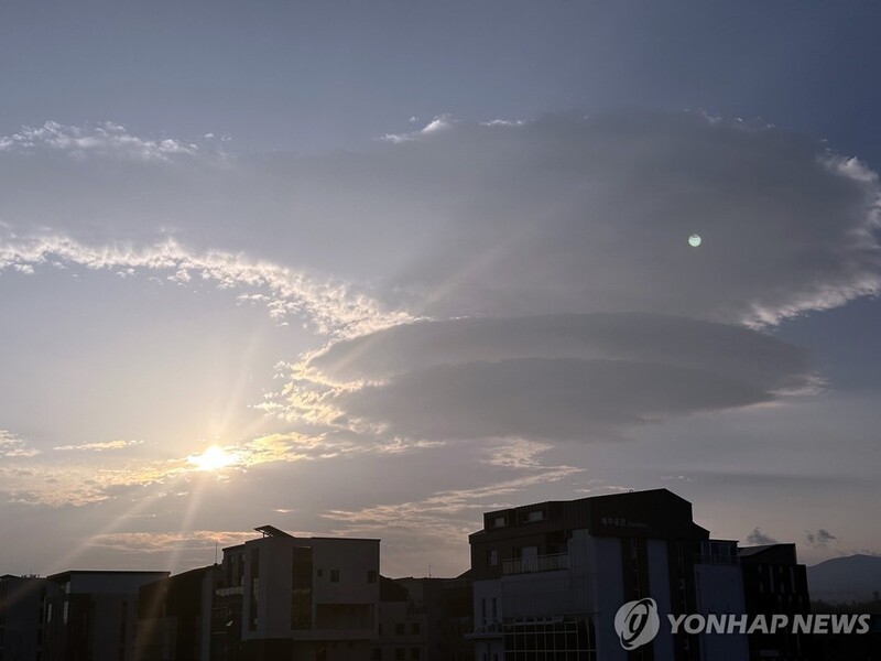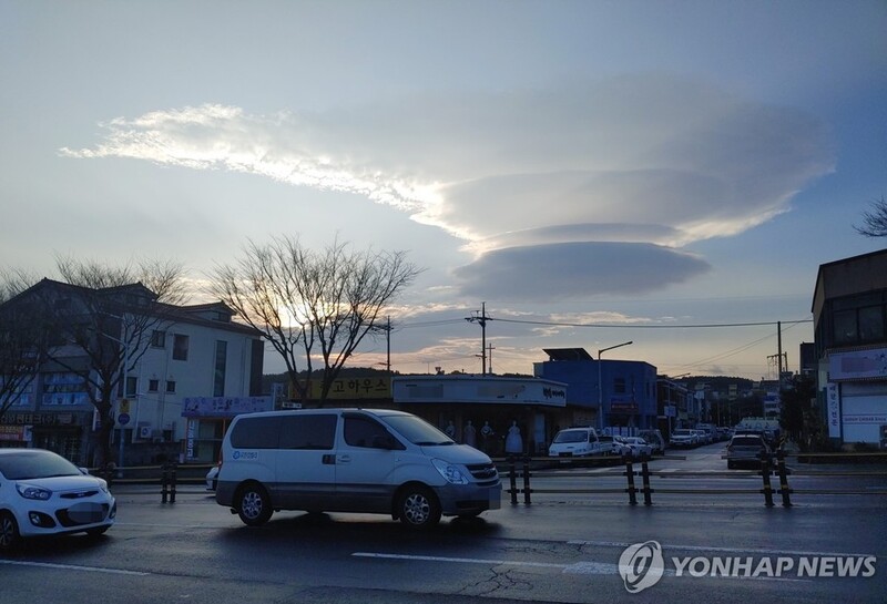 (제주=연합뉴스) 지난 주말부터 제주도의 기온이 20도를 웃돌면서 여름철에나 주로 볼 수 있는 렌즈구름(렌즈운)이 19일 아침 곳곳에서 관측됐다.