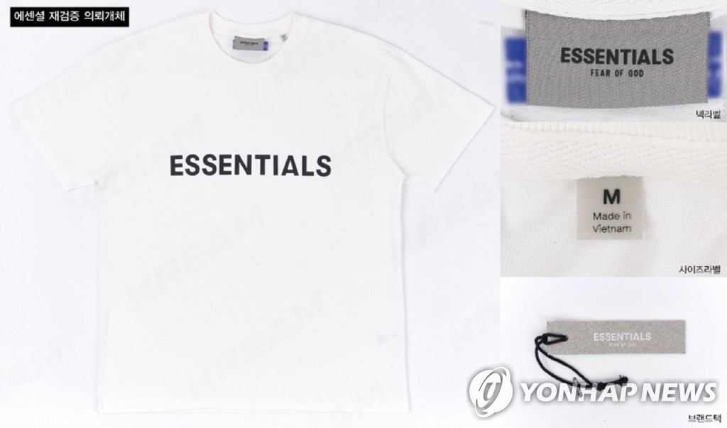 크림은 최근 온라인 패션 플랫폼 무신사에서 판매했다가 '짝퉁' 공방이 벌어진 '에센셜(Essentials)' 티셔츠에 대해 이 브랜드의 본사인 '피어 오브 갓'(Fear of God, LLC)으로부터 해당 제품이 가품이라는 판정 확인서를 받았다고 밝혔다.