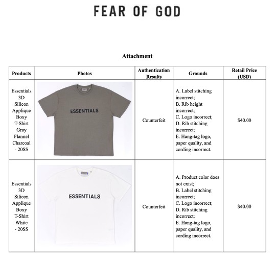 크림에 따르면 피어 오브 갓은 최근 모 패션 플랫폼을 통해 판매된 '3D 실리콘 아플리케 박시 티셔츠 20SS 화이트/차콜'이 진품인지 가품인지 재검증해 달라는 요청에 응해 검토를 진행했다.
