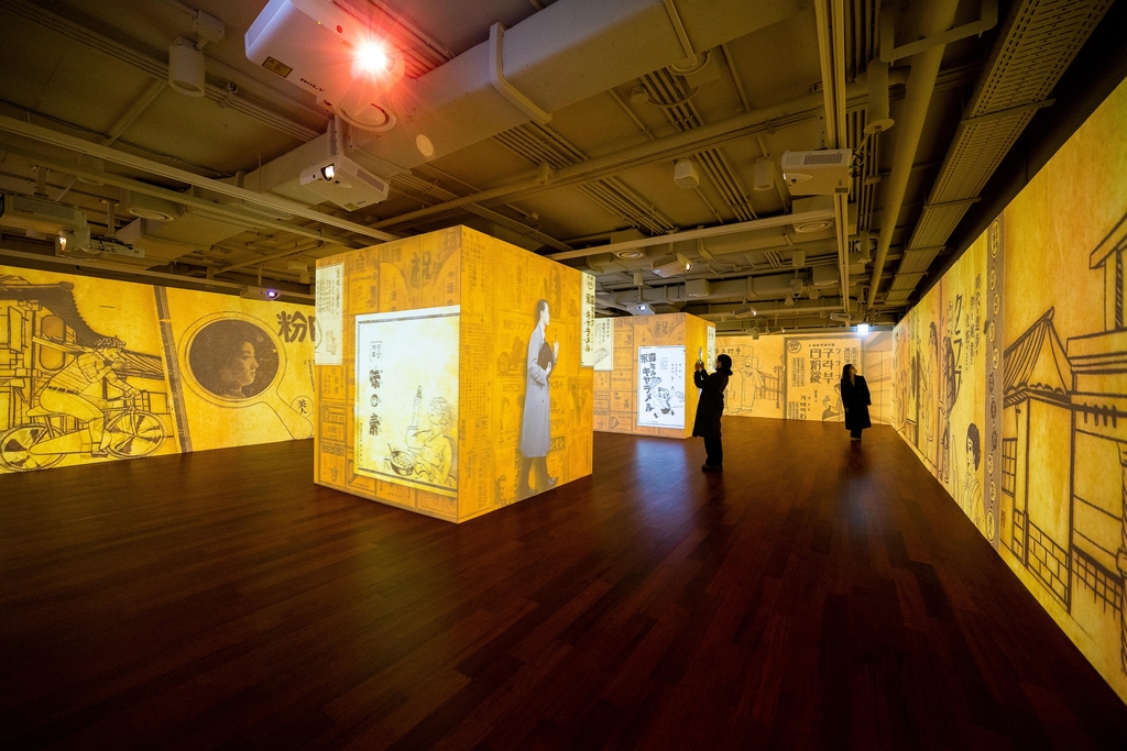 전시실 벽면에 거대한 스크린이 설치됐고, 중앙에도 영상이 투사되는 '미디어 큐브'가 마련됐다.