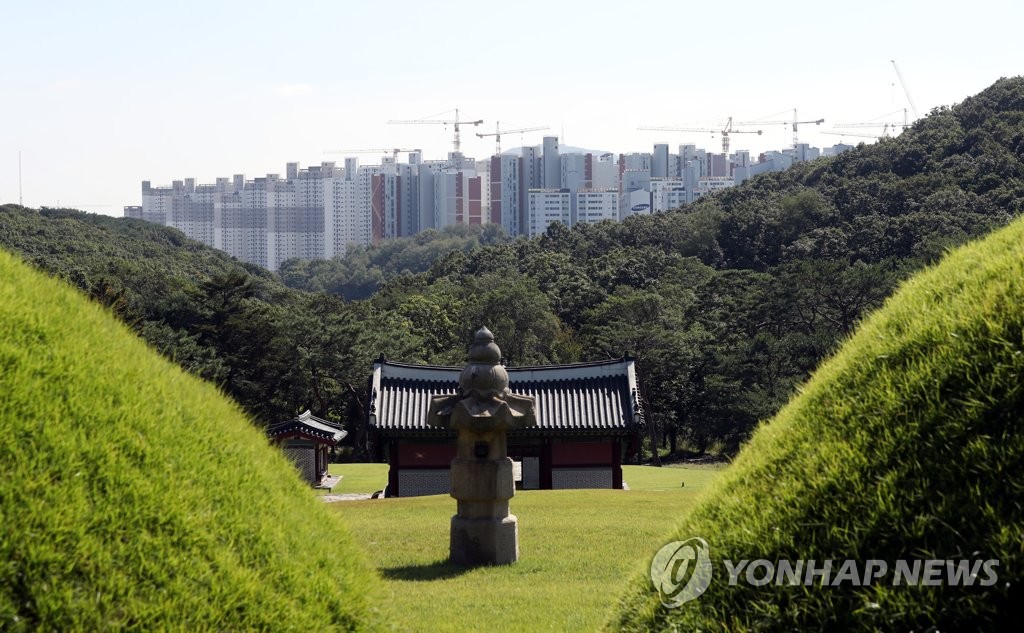 ▲ 김포 장릉 사이로 보이는 신축 아파트 단지 [연합뉴스 자료사진. 재판매 및 DB 금지]