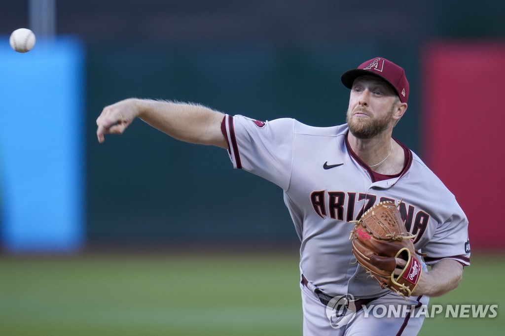 | ▲ 역투하는 메릴 켈리 (오클랜드 AP=연합뉴스) 애리조나 선발 메릴 켈리가 16일(한국시간) 미국 캘리포니아주 오클랜드 콜리시엄에서 열린 메이저리그 오클랜드와의 방문 경기에 선발 등판해 역투하고 있다. |