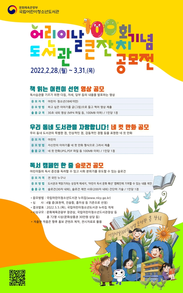 ▲ 국립어린이청소년도서관 공모 행사 = 국립어린이청소년도서관은 어린이날 100회를 맞아 28일부터 내달 31일까지 다양한 공모 행사를 진행한다.
