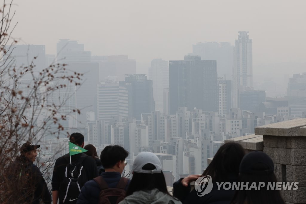 | ▲ 날 풀리자 미세먼지 기승 (서울=연합뉴스) 김주성 기자 = 서울의 초미세먼지 농도가 나쁨 수준을 보인 12일 오전 서울 종로구 인왕산에서 바라본 도심이 뿌옇다. 2023.2.12 utzza@yna.co.kr |