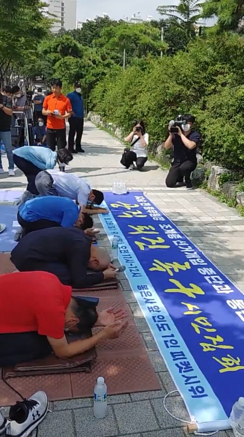 이들 단체 활동가들은 이날 집회가 끝난 뒤 1천80배를 올렸다.