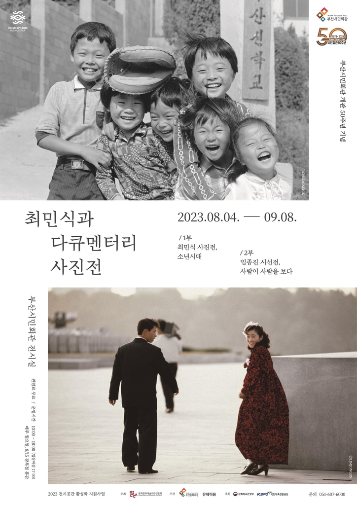 부산시민회관은 개관 50주년을 맞아 부산의 반세기를 사진에 담아온 1세대 다큐멘터리 사진작가 최민식과 사진 치유작가 임종진 특별전을 8월 4일부터 9월 8일까지 연다고 20일 밝혔다.