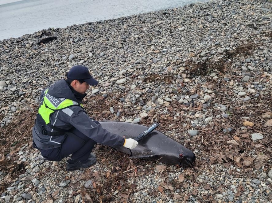(사천=연합뉴스) 박정헌 기자 = 경남 사천해양경찰서는 남해군 창선면 인근 해안가에서 멸종위기 보호동물 고래인 상괭이 사체를 발견했다고 7일 밝혔다.