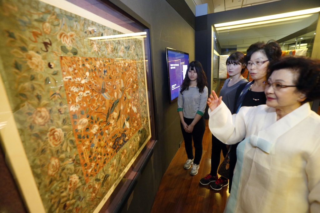 | ▲ 2013년 '궁중 자수' 특별전 행사 지난 2013년 열린 '아름다운 궁중 자수' 특별전 행사에 참석한 최유현 국가무형문화재 자수장 보유자 모습 [연합뉴스 자료사진] |