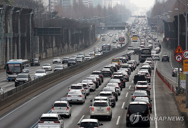 | ▲ 끝나가는 설 연휴, 귀경길 시작 (서울=연합뉴스) 윤동진 기자 = 연휴 사흘째인 11일 오후 서울 잠원IC 인근에서 바라본 경부고속도로 상(왼쪽)하행선 모습. 이날 도로공사는 막바지 귀성객과 귀경객들로 양방향 차량 흐름이 모두 혼잡할 것으로 예상했다. 2024.2.11 mon@yna.co.kr |