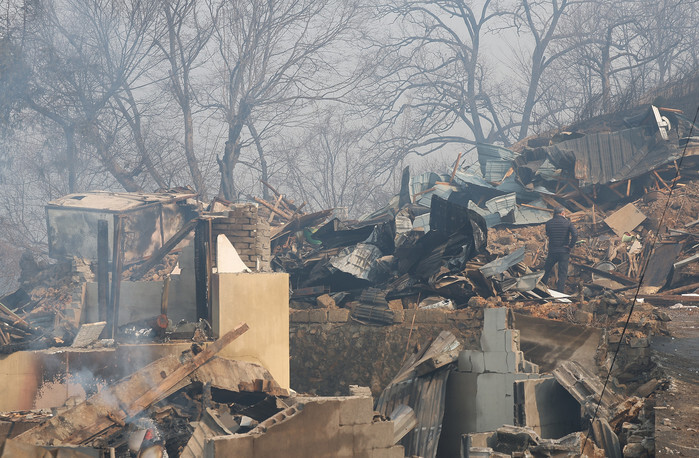 This photo taken on March 23, 2025, shows a home in Uiseong Country, about 180 kilometers southeast of Seoul, destroyed by a wildfire in the region. (Yonhap)