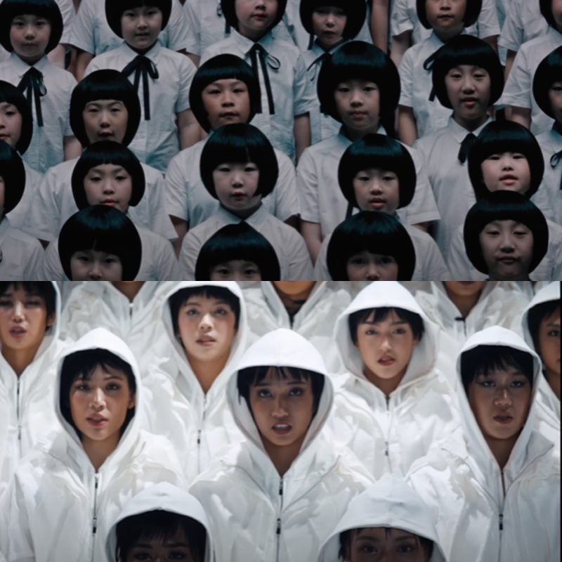 모지스는 '페인'에서 흰옷을 입은 어린이들을 카메라가 빠르게 훑고 지나가는 장면이 '록스타'에 유사하게 등장한다고 주장했다. '록스타'에는 흰 두건을 쓴 사람들을 카메라가 빠르게 훑고 지나가는 장면이 등장한다.