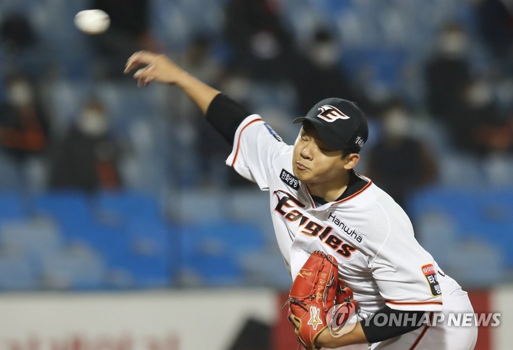 | ▲ In this file photo from Oct. 29, 2020, Kim Jin-wook of the Hanwha Eagles pitches against the KT Wiz in the top of the sixth inning of a Korea Baseball Organization regular season game at Hanwha Life Eagles Park in Daejeon, 160 kilometers south of Seoul. (Yonhap) |