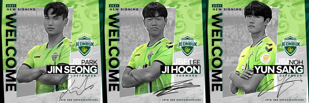 (서울=연합뉴스) 안홍석 기자 = 프로축구 K리그1 전북 현대는 산하 유스팀 영생고 출신의 박진성(19)과 이지훈, 노윤상(이상 18세)을 영입했다고 7일 밝혔다.