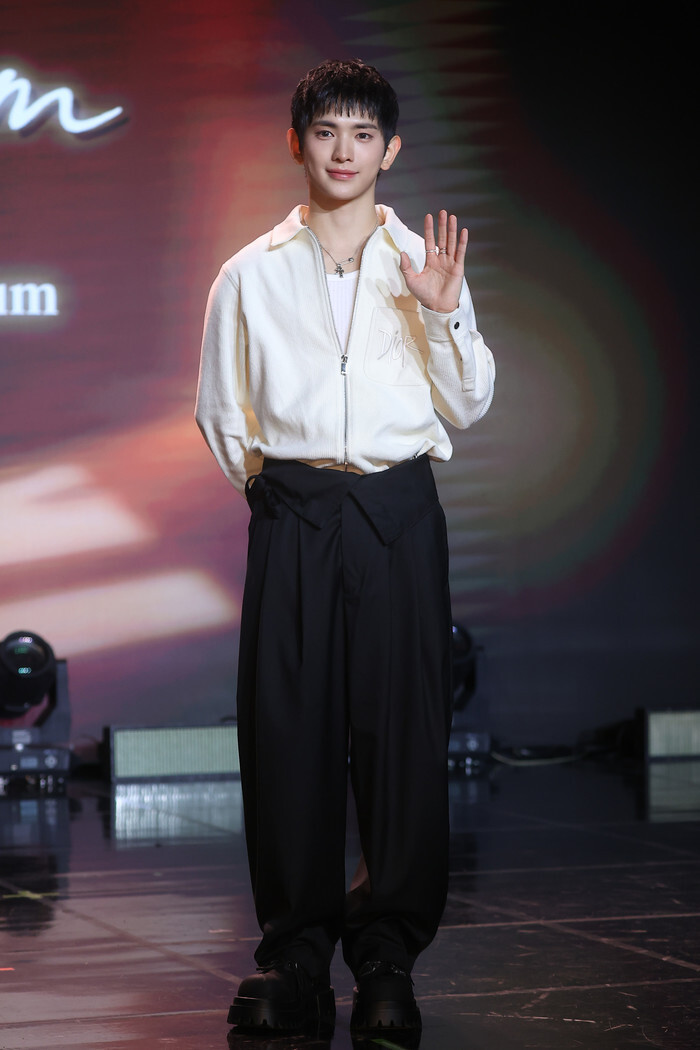 Lew, a member of South Korean boy group Tempest, poses for a photo during a showcase for the group's seventh mini album "As I am" in Seoul on Oct. 27, 2025. (Yonhap)