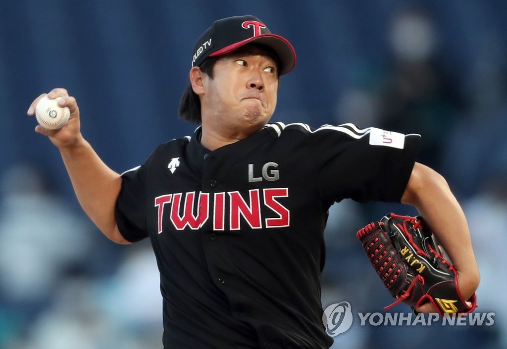 | ▲  Kim Ji-yong of the LG Twins pitches against the NC Dinos in the bottom of the ninth inning of a Korea Baseball Organization regular season game at Changwon NC Park in Changwon, 400 kilometers southeast of Seoul, on Oct. 17, 2021. (Yonhap) |