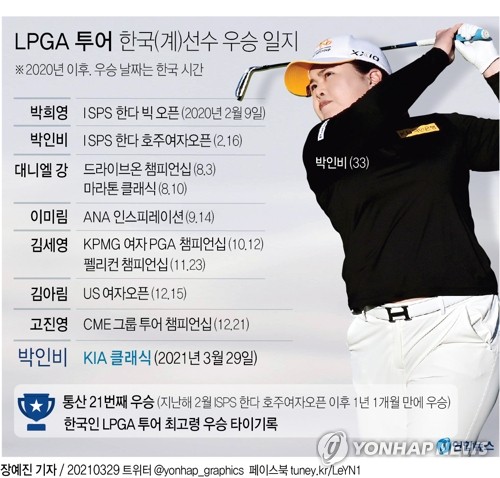 | ▲ [그래픽] LPGA 투어 한국(계)선수 우승 일지 (서울=연합뉴스) 장예진 기자 = jin34@yna.co.kr |