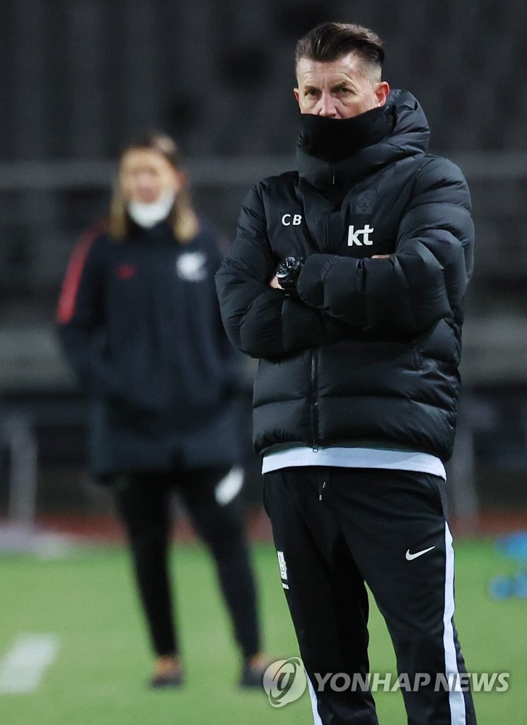 | ▲ South Korea head coach Colin Bell watches his team in action against New Zealand during the teams' women's football friendly match at Goyang Stadium in Goyang, Gyeonggi Province, on Nov. 30, 2021. (Yonhap) |