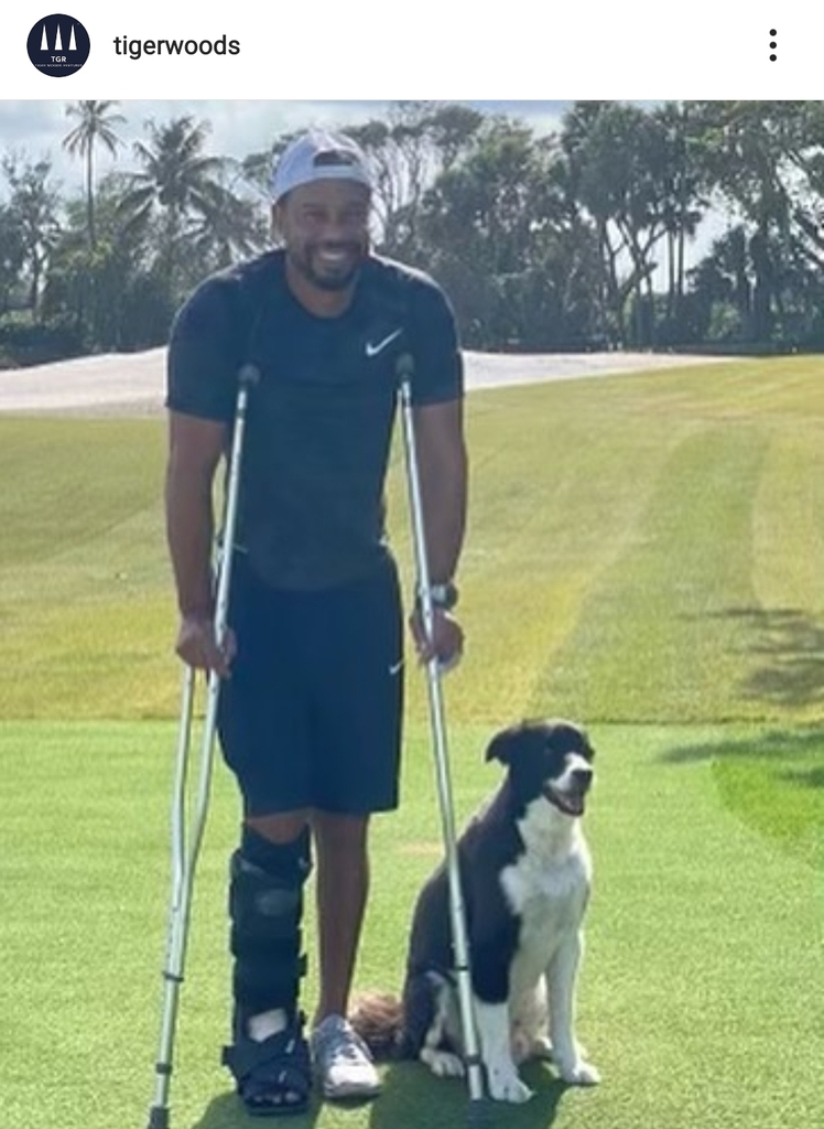 3월 미국 플로리다주 자택으로 이동한 우즈는 24일에는 자신의 소셜 미디어에 목발을 짚고 있는 사진을 공개하며 '예상보다 회복 속도가 빠르다'며 옆에 있는 반려견을 가리켜 '믿음직한 재활 파트너가 있어 더욱 좋다'는 글을 올리기도 했다.