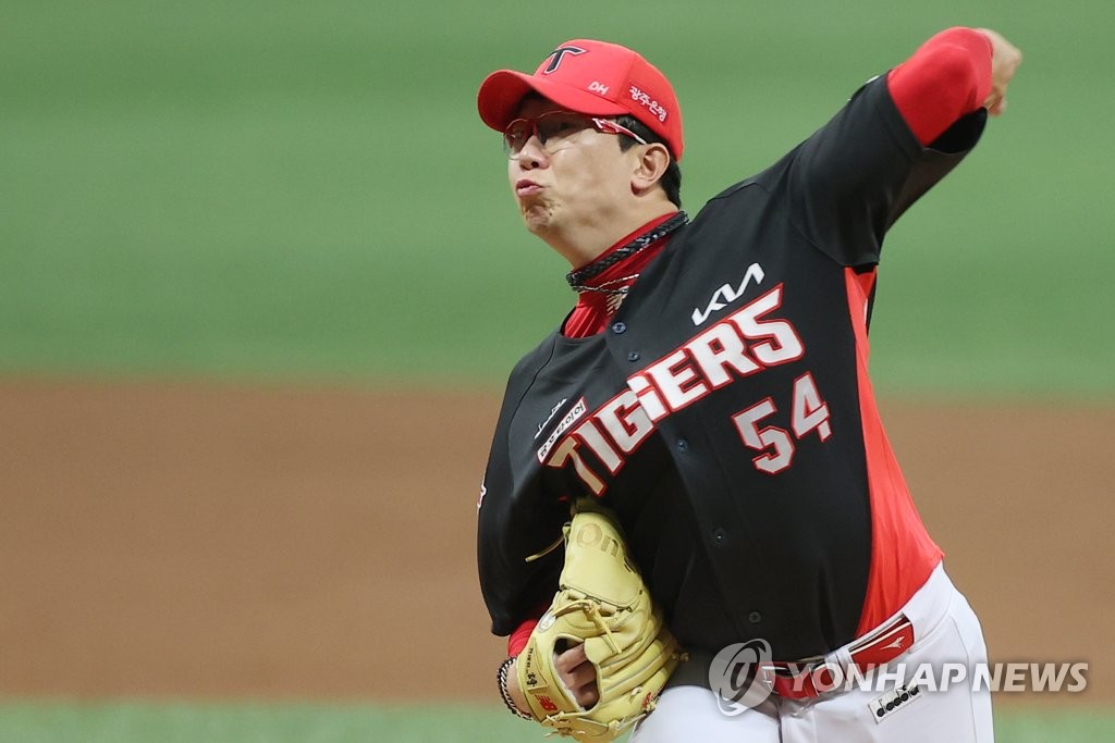| ▲  Yang Hyeon-jong of the Kia Tigers pitches against the Kiwoom Heroes during the bottom of the first inning of a Korea Baseball Organization regular season game at Gocheok Sky Dome in Seoul on June 29, 2022. (Yonhap) |