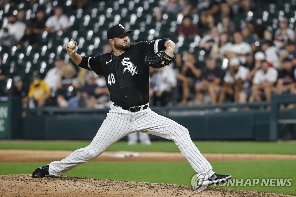 | ▲  In this USA Today Sports photo via Reuters, Mike Wright of the Chicago White Sox pitches against the Oakland Athletics during the top of the ninth inning of a Major League Baseball regular season game at Guaranteed Rate Field in Chicago on Aug. 17, 2021. (Yonhap) |