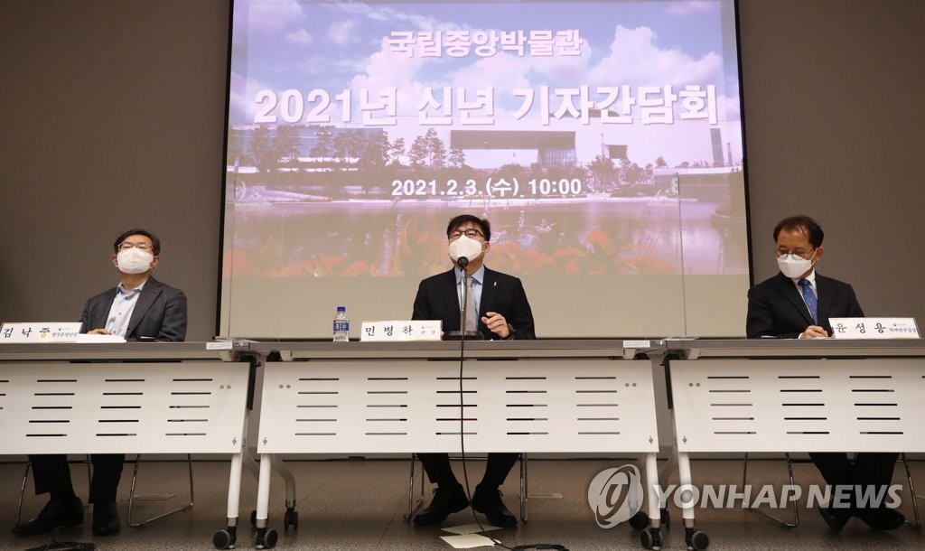 | ▲ 국립중앙박물관 2021년 신년 기자간담회 (서울=연합뉴스) 진연수 기자 = 민병찬 국립중앙박물관 관장(가운데)이 3일 오전 서울 용산구 국립중앙박물관에서 열린 2021년 신년 기자간담회에서 질문에 답변하고 있다. 2021.2.3 jin90@yna.co.kr |