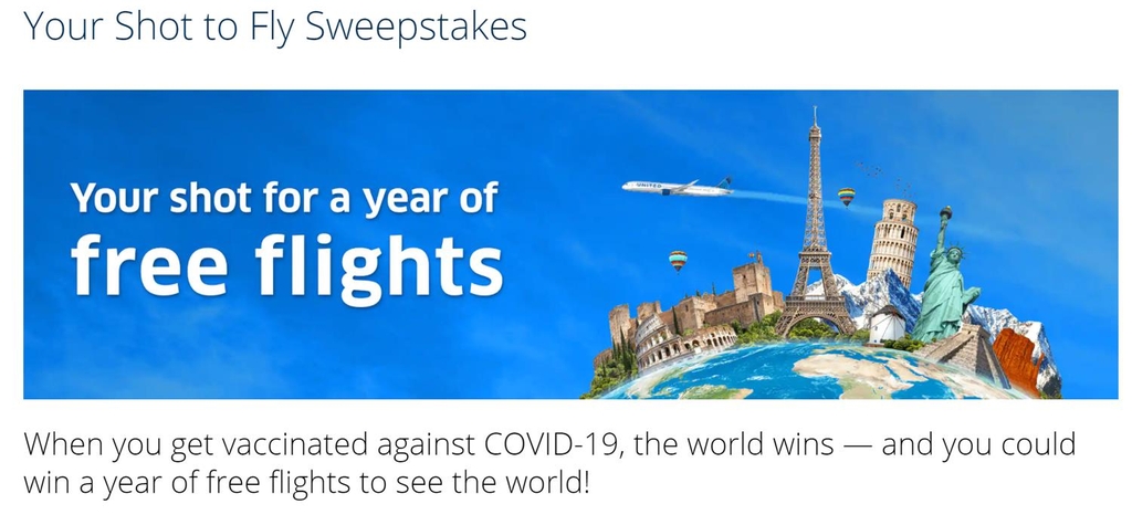 | ▲ 미 유나이티드항공, 코로나19 백신 접종 독려 경품 행사 [유나이티드항공 웹사이트 화면 캡처 / 재판매 및 DB 금지] |