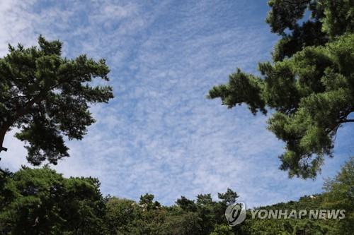 | ▲ 나뭇잎 사이로 보이는 파란 하늘 (서울=연합뉴스) 백승렬 기자 = 완연한 가을 날씨를 보인 26일 서울시 도봉구 북한산 자락 위로 파란 하늘과 옅은 구름이 보인다. 2021.9.26 |