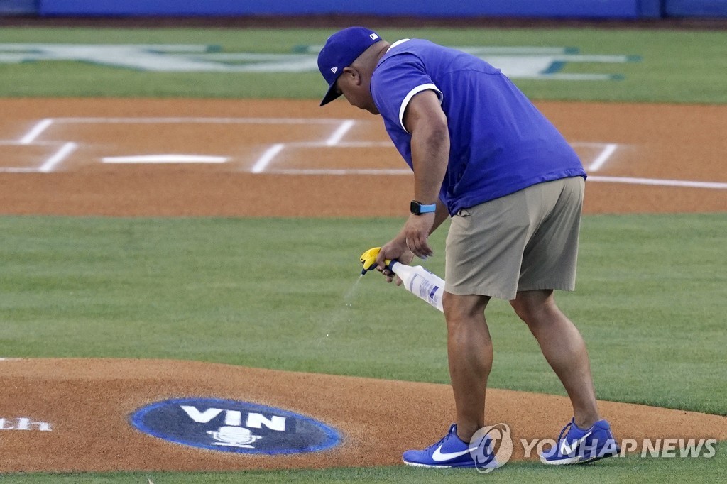 | ▲ 다저스타디움 마운드에 새겨진 스컬리 추모 특별 로고 [AP=연합뉴스] |