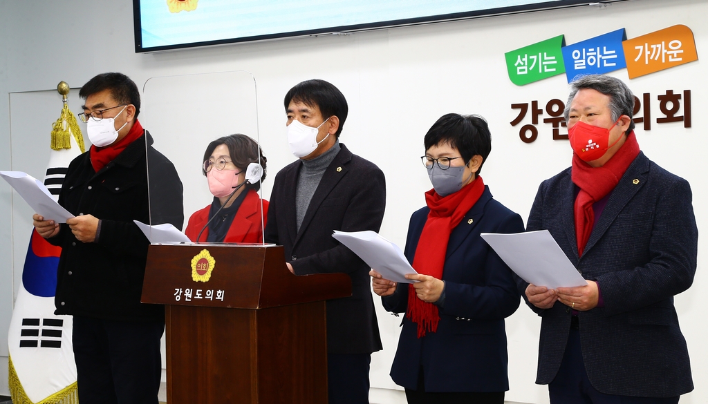 | ▲ 성명 발표하는 국민의힘 강원도의원 [강원도의회 제공.재판매 및 DB 금지] |