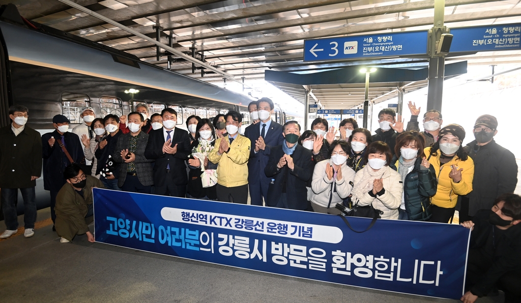 이날 한준호 국회의원, 명재성 덕양구청장 등 고양시민 30여 명이 행신역에서 열차를 타고 강릉역에 도착, 김한근 강릉시장 등의 환영을 받았다.