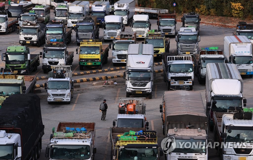 | ▲ Freight trucks park in western Seoul on Nov. 7, 2021, amid a shortage of urea water solution due to China's export curbs. (Yonhap) |