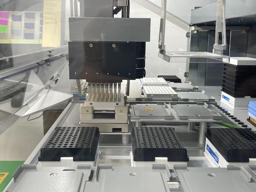 At the lab, researchers extract nucleic acid from a specimen of an infected individual and add drops of reagent to the extract. And they put the mixture of nucleic acid and reagent into a machine that conducts gene sequencing.