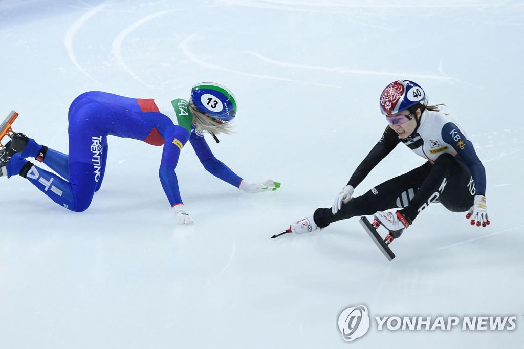 In the women's 1,500m final, Kim Ji-yoo tried to cut inside Choi on the final corner and her right skate clipped Choi's left skate. Choi, Kim and a third Korean in the final, Lee Yu-bin, were 1-2-3 coming down the final stretch. But with Kim wiping out Choi, who crashed hard into the padded wall, Lee ended up with the lucky gold medal.
