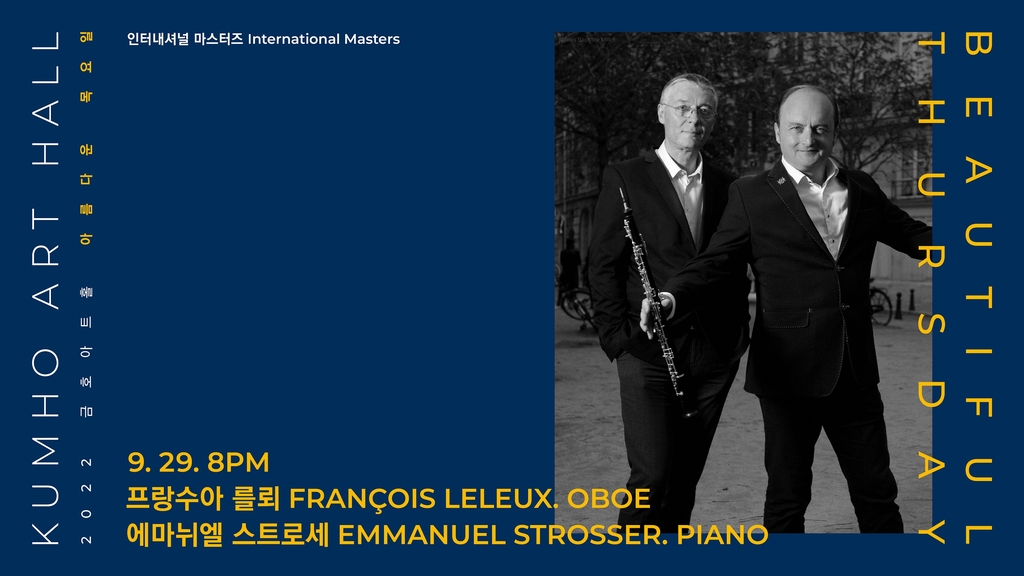 ▲ 오보이스트 푸랑수아 를뢰 금호아트홀 공연 = 프랑스 출신의 세계적인 오보이스트 프랑수아 를뢰와 그의 실내악 파트너인 피아니스트 에마뉘엘 스트로세가 오는 29일 서울 금호아트홀 무대에 오른다. 금호문화재단의 해외 연주자 초청 기획공연인 '인터내셔널 마스터즈'의 두 번째 공연이다.