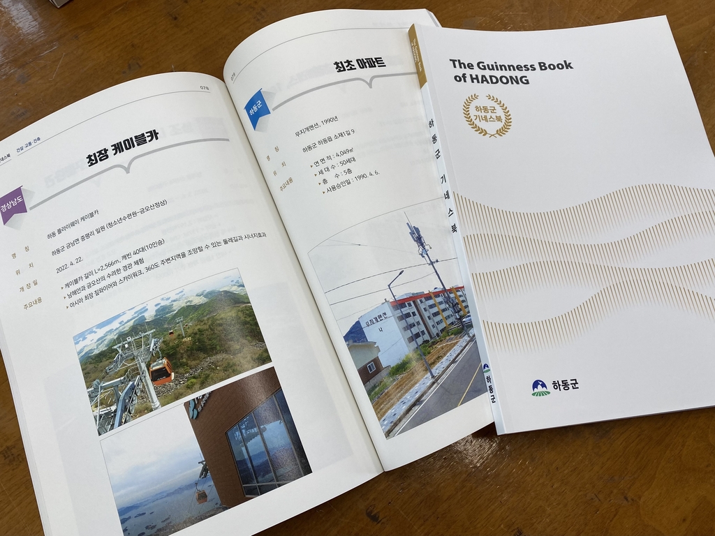 (하동=연합뉴스) 지성호 기자 = 경남 하동군은 하동 만의 최초·최고·최다 인물·역사·시책 등을 기록한 '하동군 기네스북'을 발간했다고 9일 밝혔다.