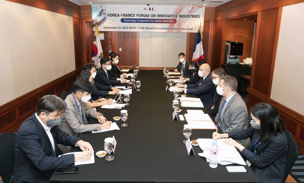 | ▲ This photo, provided by the Ministry of Trade, Industry and Energy, shows officials from South Korea and France holding talks during the seventh Korea-France Forum on Innovative Industries held in Seoul on Sept. 22, 2022. (PHOTO NOT FOR SALE) (Yonhap) |