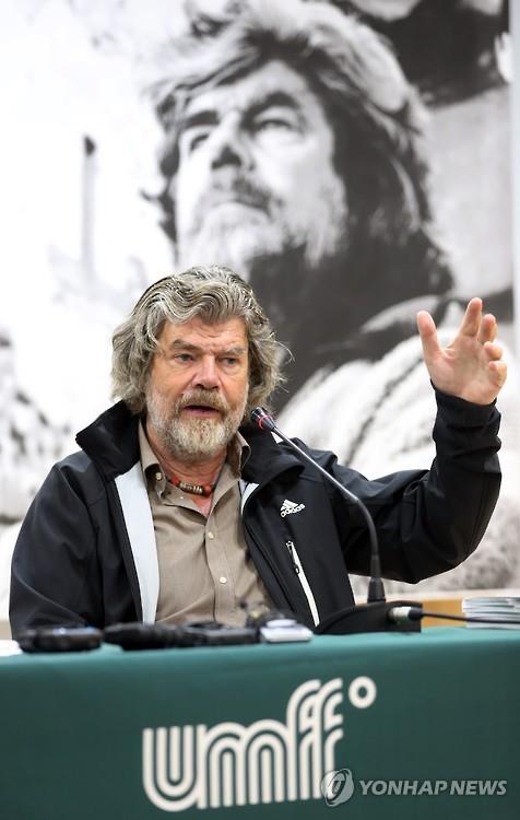 | ▲ 라인홀트 메스너 2016년 10월 제1회 울주세계산악영화제에 초청된 세계 산악계 전설 라인홀트 메스너가 기자들의 질문에 답하고 있다.[연합뉴스 자료사진] |