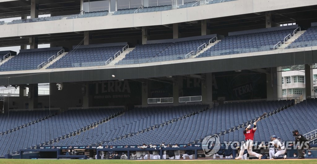 | ▲ In this file photo, a Korea Baseball Organization preseason game between the NC Dinos and the SSG Landers is under way at an empty Changwon NC Park in Changwon, 400 kilometers southeast of Seoul, on March 14, 2022. (Yonhap) |