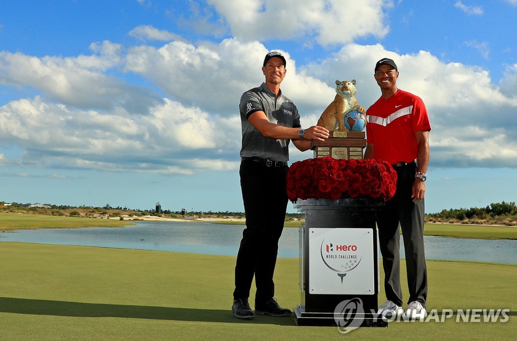 | ▲ 2019년 히어로 월드 챌린지 당시 우승자 헨리크 스텐손과 주최자 타이거 우즈 [게티이미지/AFP=연합뉴스] |