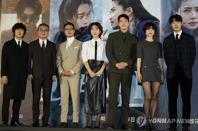 | ▲ 영화 '외계+인2' 제작보고회 (서울=연합뉴스) 류효림 기자 = 배우 진선규(왼쪽부터), 김의성, 조우진, 염정아, 김우빈, 김태리, 류준열이 22일 서울 용산구 한강로동 CGV용산점에서 열린 영화 '외계+인2' 제작보고회에서 포즈를 취하고 있다. 2023.11.22 ryousanta@yna.co.kr |