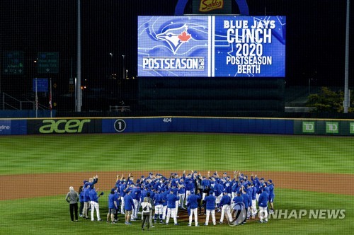 | ▲ 4년 만의 가을 야구 출전을 자축하는 토론토 선수들 [AP=연합뉴스] |