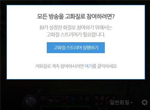 | ▲ 아프리카TV의 '고화질 스트리머' [아프리카TV 캡처] |