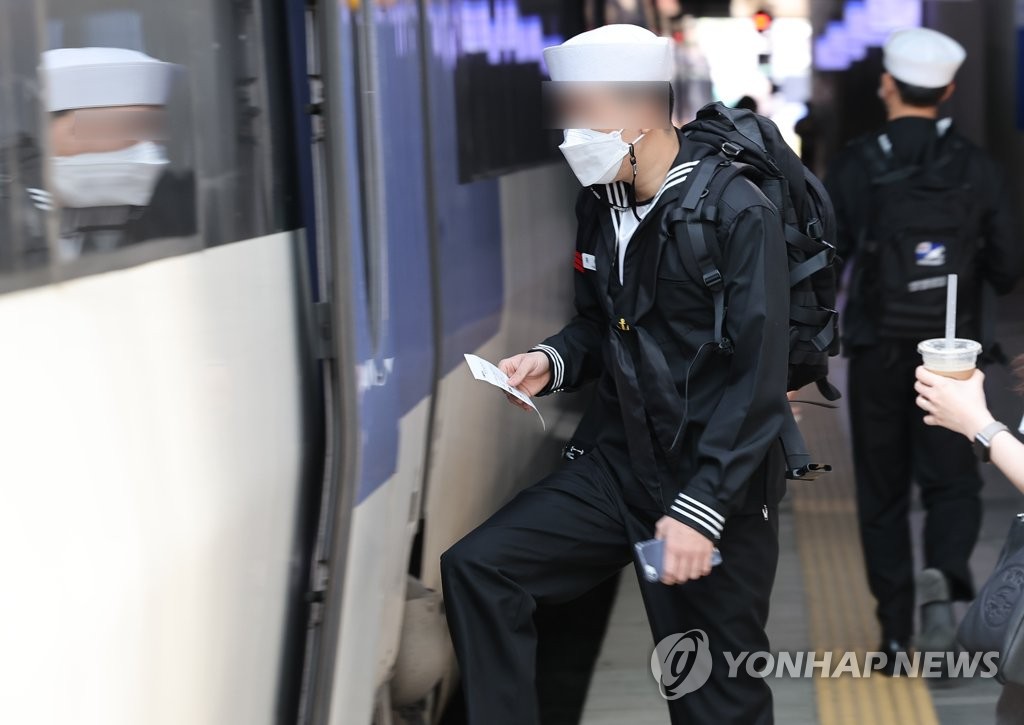 | ▲ This file photo, taken May 1, 2022, shows a service member boarding a train at Seoul Station in central Seoul. (Yonhap) |