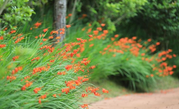 애기동백 관람로를 따라 식재된 200만 본의 크로코스미아 꽃이 최근 활짝 피어나 아름다움을 뽐내고 있다고 군은 전했다.